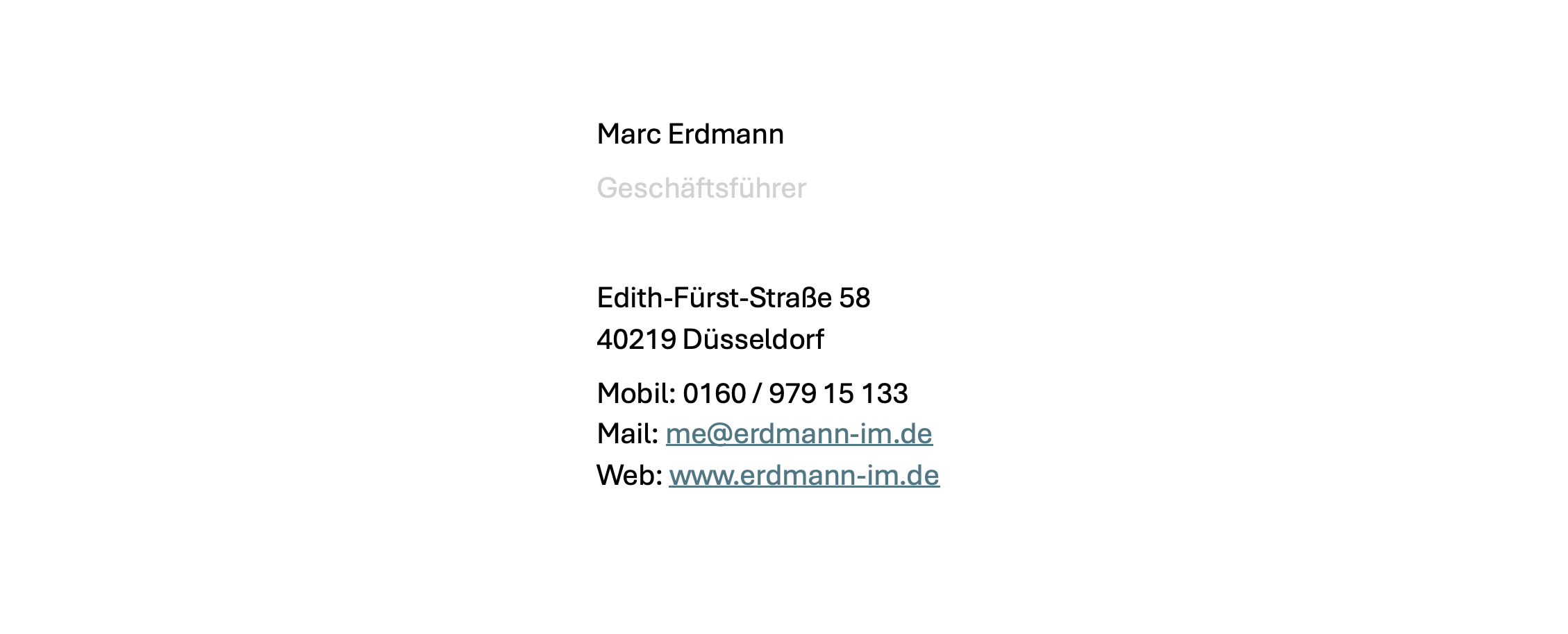 eingetragen. Geschäftsführender Gesellschafter Marc Erdmann.